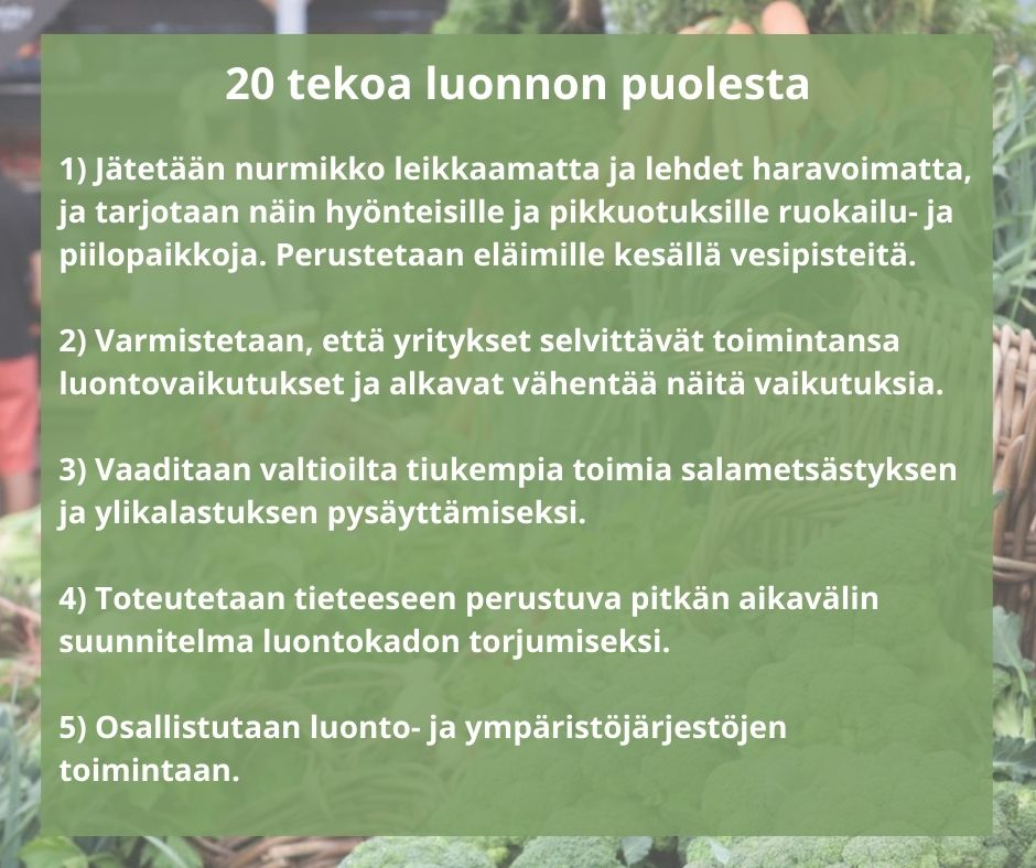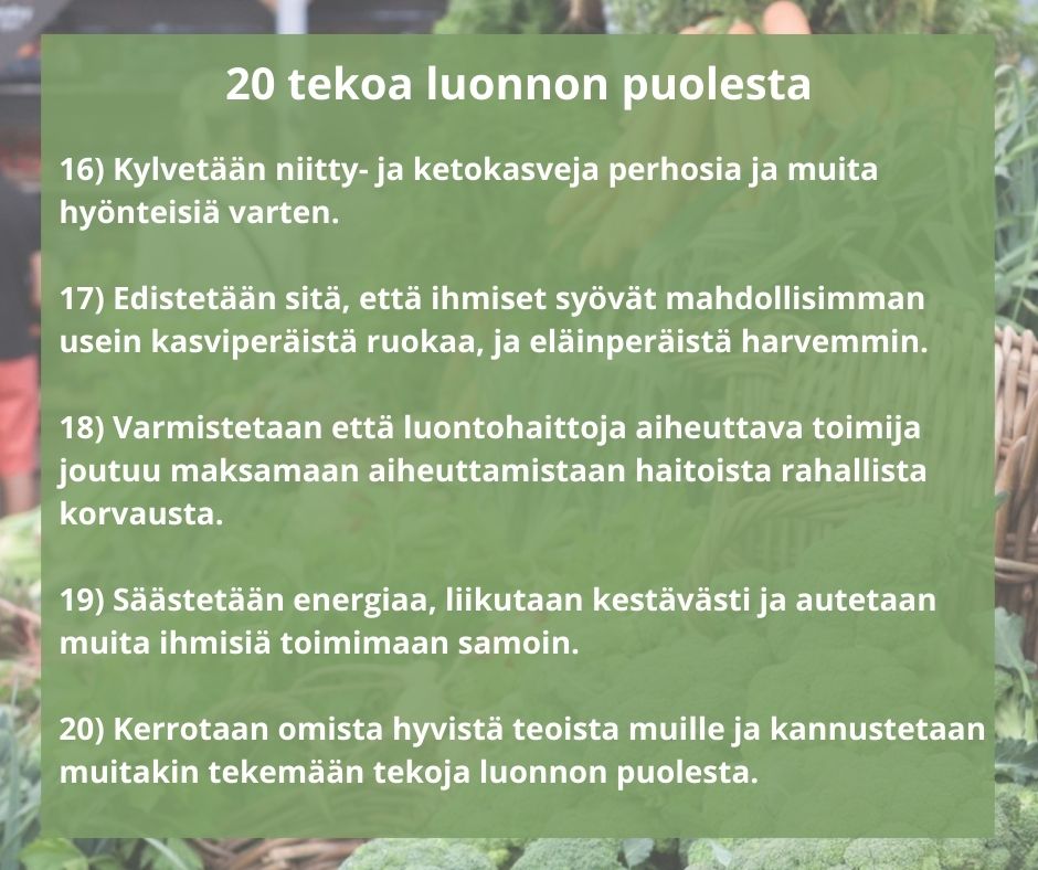 6) 20 tekoa luonnon puolesta