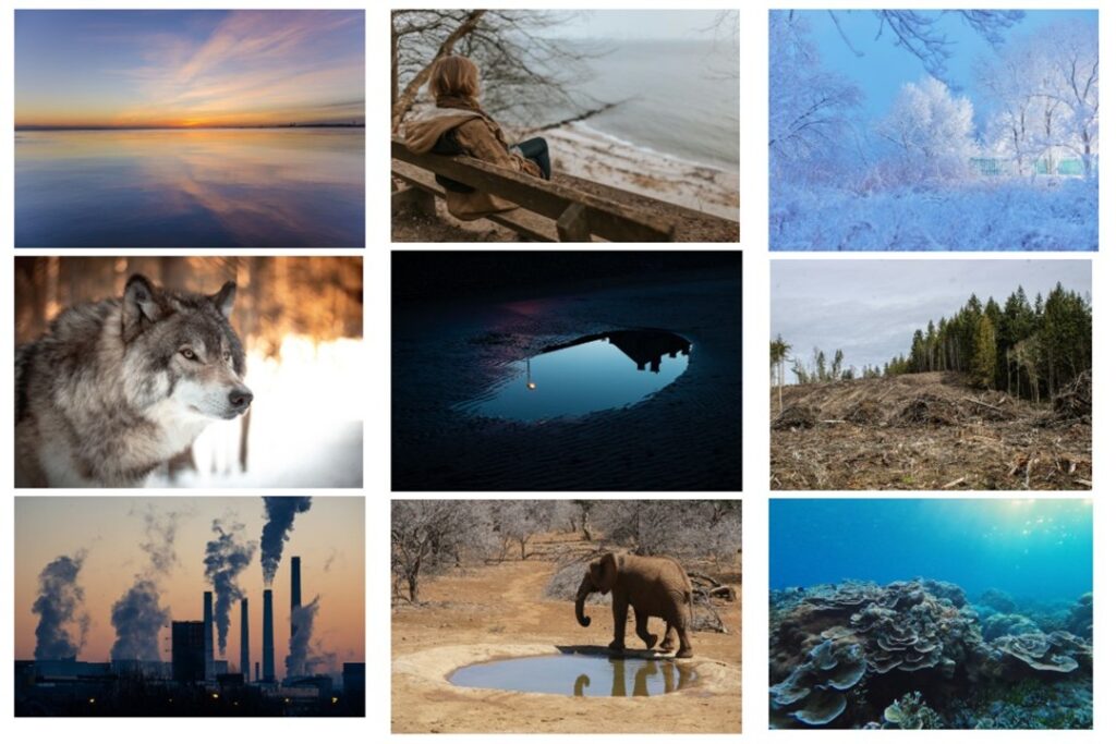 - Suru voi auttaa meitä näkemään sitä, mikä elämässä on hyvää ja arvokasta. Katsokaa molempia kuvakollaaseja ja pohtikaa, mitä tärkeitä asioita luontokatoon liittyvä suru voi auttaa meitä huomaamaan.