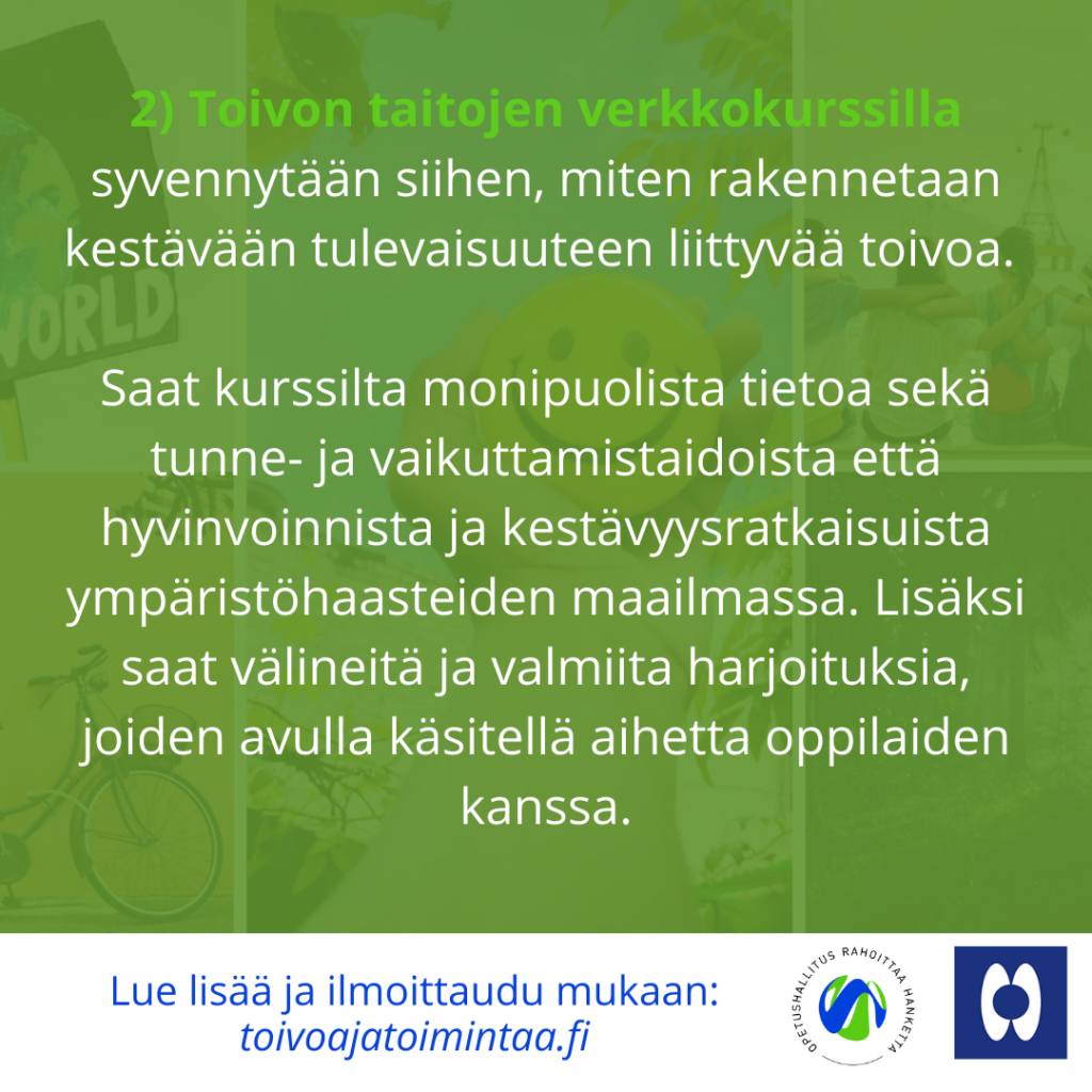 - Toivon taitojen verkkokurssin lisätiedot ja ilmoittautuminen täällä.